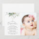 Invite friends and family in style and set the tone for your special day with this elegant confirmation invitation. Design features eucalyptus leaves and greenery on white background.