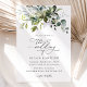 Invite friends and family in style and set the tone for your special day with this charming wedding invitation. Design features eucalyptus leaves and greenery on white background.