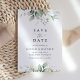 Invite friends and family in style and set the tone for your special day with this charming save the date card. Design features eucalyptus leaves and greenery on white background.