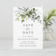 Invite friends and family in style and set the tone for your special day with this charming save the date card. Design features eucalyptus leaves and greenery on white background.
