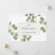This modern, minimalist watercolour pregnancy announcement is suitable for family and friends. The design includes greenery eucalyptus branches on the front and back of the card. All text is fully customisable.