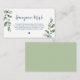 This is the Modern casual Greenery eucalyptus, in navy blue script, with green watercolour background at the back page , Script minimalism, typeface font, Wedding Enclosure Card.
