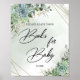 A really stunning boho design that has captivated all celebrations and events over the past few years, namely a lavish bouquet - a mix of succulents and eucalyptus greenery, elegantly woven around an faux gold geometric frame. You can be sure that with this design for your stationery for the event, you will be top modern and extremely impactful, and your event will be remembered for a long time. The design is featured watercolor hand-painted succulent flowers in dark deep green, dusty green, sage green and dusty blue, gracefully combined with greenery eucalyptus branches, and delicate woven around a faux gold geometric frame - so modern lately terrarium. This whole lavish bouquet of succulents elegantly envelops the inscriptions in the centre, as if tender love hug. In this beautiful trendy design we have prepared all the necessary elements for your boho event Party - such as invitations for wedding, engagement, elopement, anniversary, games, welcome posters, table signs and much more, so you can get a complete set of this exceptional boho design with a watercolor succulents flowers mixed pastel green eucalyptus foliage, sage green leaves woven into faux gold frame.