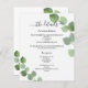 A modern, elegant wedding details/program/timeline. A white background decorated with eucalyptus greenery, sprigs. Personalise and add your names and wedding details. Black coloured letters.