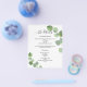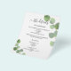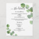 A modern, elegant wedding details/program/timeline. A white background decorated with eucalyptus greenery, sprigs. Personalise and add your names and wedding details. Black coloured letters.