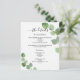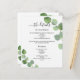 A modern, elegant wedding details/program/timeline. A white background decorated with eucalyptus greenery, sprigs. Personalise and add your names and wedding details. Black coloured letters.