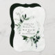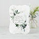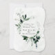 Design features a printed coloured foliage element in shades of blush green and emerald green watercolor eucalyptus foliage leaves wreath on a light green watercolor background. Calligraphy or type writing with the design artwork. Mix and match collection piece. Great for your wedding celebrations!