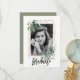 A beautiful faux gold frame with greenery accents graduation announcement photo card, with co-ordinating reverse side. Easy to edit or delete the available text fields to personalize the information with your own details, and add a special photo for a professional and custom finish. Lots of matching items in this blush floral collection. Please visit my shop to see the full range. Invitations, stickers and other products also available.