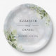 Elegant floral greenery winter wedding paper plate personalised with your names and special wedding date. Designed by Thisisnotme©