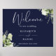 Greenery Floral Navy Blue Wedding Welcome Sign