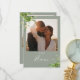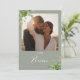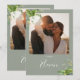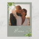 These elegant botanical greenery floral wedding table numbers can be personalised with your photo and table numbers in chic typography on a sage green background. The cards are printed on the front and back (double-sided). Designed by Thisisnotme©