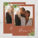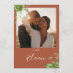 These elegant botanical greenery floral wedding table numbers can be personalised with your photo and table numbers in chic typography on a terracotta background. The cards are printed on the front and back (double-sided). Designed by Thisisnotme©