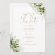 This elegant botanical greenery leaves save the date invitation can be personalised with your information in chic gold typography with your wedding website QR code and details on the reverse. Designed by Thisisnotme©