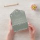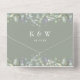 All in one wedding invitation featuring pretty watercolor greenery foliage and elegant modern typography on a sage green background. The invitation includes a perforated RSVP card that features your wedding website QR code. Designed by Thisisnotme©