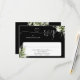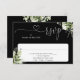 A simple elegant black and white greenery floral hearts scrip kindly reply RSVP card with your details set in chic typography. Designed by Thisisnotme©