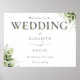 This elegant wedding welcome sign featuring greenery floral typography can be personalised with your information in chic lettering. Designed by Thisisnotme©