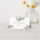 Tent form place card for wedding celebration with greenery floral. gold handwriting font and caustomizable table number & name.