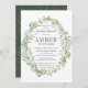 This beautiful invitation features a green leafy watercolor foliage wreath and your wedding details written in a beautiful font. Perfect for a spring garden/outdoor wedding theme. Change the font size, style, and colour by clicking on the 'Customise' button. Reword the invitation to fit your personal style. Matching items are available.