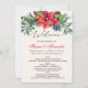 Winter Wedding. Wedding program - this design features a watercolor Poinsettia with an arrangement of mistletoe, pine branchlet, pine cones, berries and sleigh bells. The background colour (front and back) can be changed.