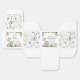 Sweet watercolor safari themed favor box featuring a group of jungle animals and some greenery or foliage. Great as a personalized favor box for a gender neutral safari themed baby shower.