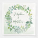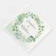 These wedding napkins feature a greenery watercolor leaves and foliage wreath. Personalise them with the bride's and groom's names. These napkins are part of a collection which includes a full range of matching bridal shower and wedding products. Please visit the collection page in our store to see the full range.