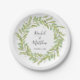 Elegant watercolor greenery foliage wreath frames your names and wedding date in chic slate grey lettering. MATCHING items in our store.