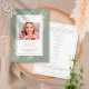 An elegant personalised sage green botanical watercolor greenery order of service funeral memorial program. Designed by Thisisnotme©