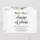 This is the modern summer greenery garden, in Black font, Wedding party invitation Rescheduled (Change of plans) postcard. It is the perfect and elegant way to make the reschedule announcement to your friends and family.