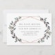 This trendy and elegant change of address card features a faux rose gold geometric shape surrounded by beautiful branches of green leaves, and a sage green back.