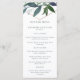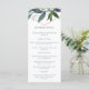 This trendy and elegant wedding menu card features a faux rose gold geometric shape surrounded by beautiful greenery branches.