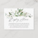 Organic inspired greenery baby shower display shower cards.