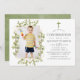 Wild woodland forest confirmation invitation featuring leaves adorning a gold geometric frame. A portrait shaped photo is recommended.