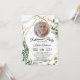 Greenery Geometric golden lines with eucalyptus in the background. The design is so elegant and modern that features a Golden and Bluish accent style with gold lines that complement the design.  Also, there is a chic frame of beads where you can add your photo to make the invitation extra special and customisable.