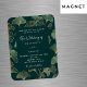 Green background decorated with a ginkgo leaf pattern. Personalise and add your names and wedding details. White letters.