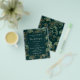 Green background decorated with a ginkgo leaf pattern. Personalise and add your names and wedding details. White letters.