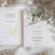 This exquisite wedding invitation features a refined gold calligraphy design on a crisp white background, exuding sophistication and timeless charm. The beautifully flowing script adds an elegant touch, making it perfect for formal and luxurious weddings. The classic serif font complements the gold typography, creating a balanced and polished aesthetic.