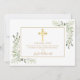 Greenery Gold Cross Baptism Christening Photo Thank You Card