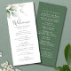 Green and gold botanical greenery wedding program.