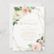 This greenery & gold geometric elegant bridal brunch invitation is perfect for a rustic wedding shower. The design features lovely white, pink, and blush hand-painted roses and a touch of greenery, adorning gold geometric frames, inspiring artistic beauty.
