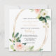 This greenery & gold geometric elegant floral wedding invitation is perfect for a rustic wedding. The design features lovely white, pink, and blush hand-painted roses and a touch of greenery, adorning gold geometric frames, inspiring artistic beauty.