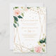 This greenery gold geometric quinceañera birthday party invitation is perfect for a fifteenth birthday party celebration. The design features lovely white, pink, and blush hand-painted roses and a touch of greenery, adorning gold geometric frames, inspiring artistic beauty.