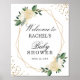 Modern Greenery Gold Glitters Floral Baby Shower Sign Poster.