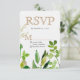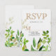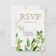 Greenery & Gold Leaf Framed Leaves Wedding RSVP Card