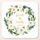 Greenery Gold Personalized Names Date Wedding Square Paper Coaster