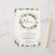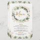 Design features a white watercolor texture background with a unique greenery wreath decorated with printed faux gold leaves and splashes.