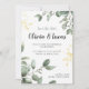 Bring natural elegance to your wedding announcement with this lush green and gold invitation. The design features tropical leaves, golden botanical elements, and sophisticated typography.