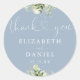 Greenery Heart Script Dusty Blue Wedding Favour Classic Round Sticker