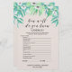 This greenery "how well do you know the bride" game is perfect for a rustic leaf or woodland theme bridal shower. The front of the game card features "how well do you know the bride", and the back of the card features "what's in your purse". The design features a beautiful green bouquet of leaves and branches with white anemone flowers and an elegant calligraphy script font on a cream beige background. Personalise the front of the card with the brides name and wedding shower date. Designed with Care by Miriam at Fresh & Yummy Paperie. For coordinating items, please visit my Zazzle store: