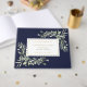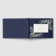An elegant navy blue and gold botanical personalised watercolor greenery celebration of life, funeral guest book. Designed by Thisisnotme©