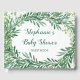 This baby shower guest book features greenery leaves and foliage. Personalise it with a name. This guest book is part of a collection which includes a full range of matching items. Please visit the collection pages in our store to see the full range of products that you can personalise for your baby shower needs.